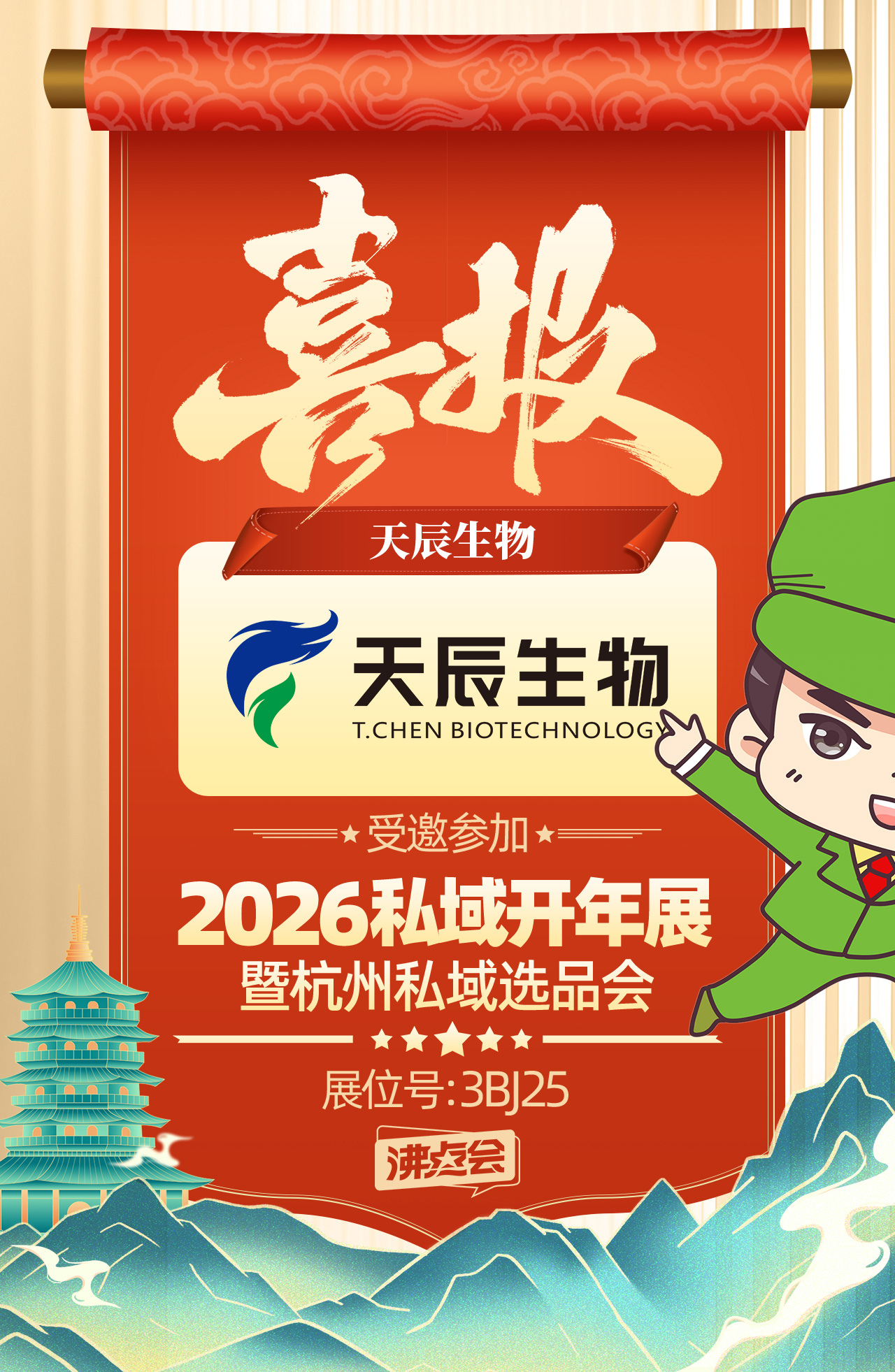 3月13日—14日,杭州国际博览中心,3BJ25展位,「威海天辰生物」期待与您面对面交流,共谋私域新蓝图,携手赢战2026!